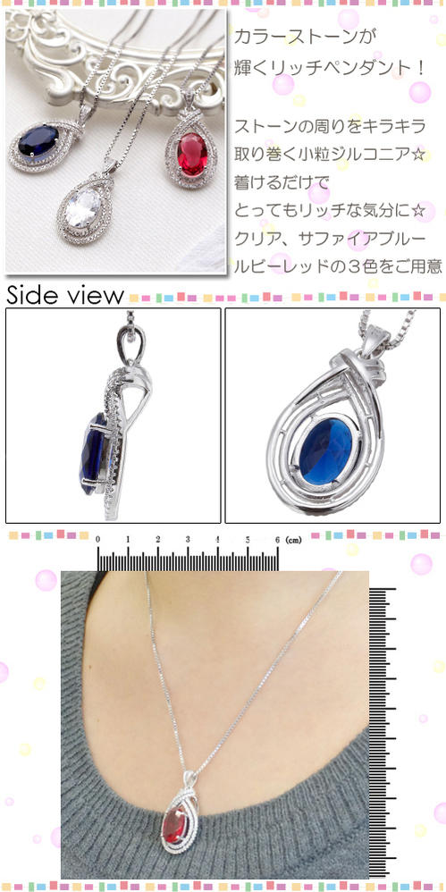 ネックレス レディース 存在感のある合成ルビー 合成サファイヤ キュービックジルコニアのペンダント 小粒石もキラキラ輝く シルバー925製 送料無料 春夏 大人気 あす楽
