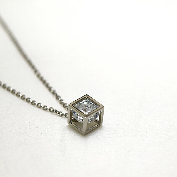 【クロネコDM便で送料無料】ビジュー イン キューブ型 ネックレス ペンダント シルバー