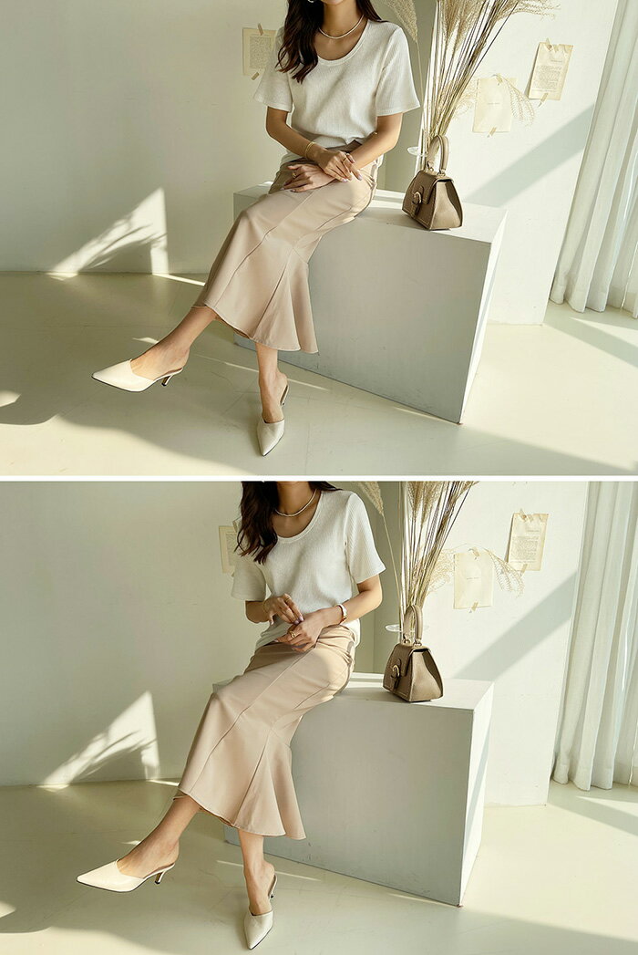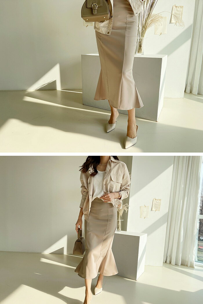 NANING9(ナンニング)フェミニンマーメイドスカート【3/29up_go】韓国 韓国ファッション レディース 春 春服 人気 ボトムス ロングスカート 上品 きれいめ お出かけ 大人 ベージュ アイボリー 【5】 ★