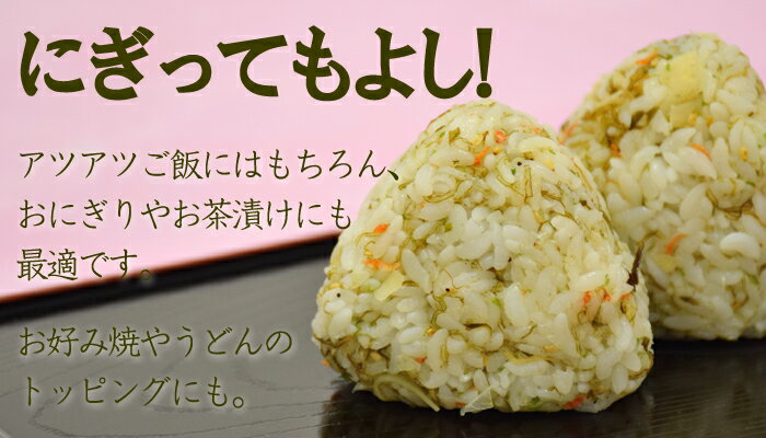 アツアツごはんに乗せると昆布はとろ〜っと、磯の香りはふわぁっと立ち上がりもうお箸が止まりません!その美味しさが“全国ふりかけグランプリ®2014年&2015年連続金賞” “第56回全国水産加工たべもの展農林水産大臣賞”に選ばれた、人気No.1のふりかけです。